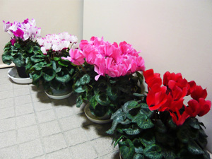 昨年末に購入した4鉢のシクラメンが、医院の玄関を飾っている。